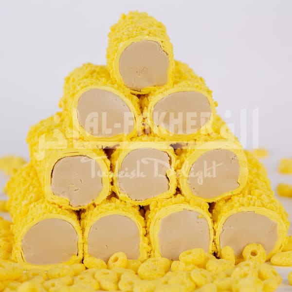 Muz severlerin vazgeçemeyeceği bir seri olan Mısır Gevrekli Muz Aromalı Sultan Karamel Lokum, tam bir damak çatlatan lezzete sahiptir.